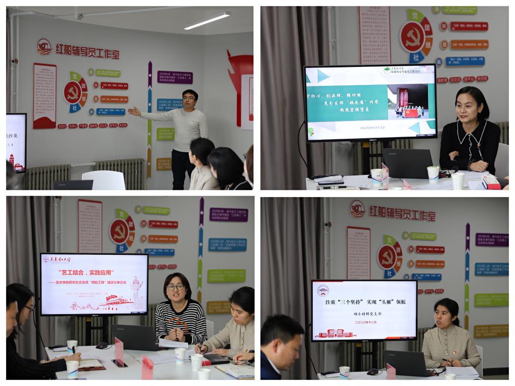活動中“紅船”輔導員工作室負責人介紹了工作室的簡介、定位、工作理念以及建設思路。學校首批“領航工程”研究生黨支部圍繞“守初心 創品牌 強功能,充分發揮‘領頭雁’作用構筑堅強堡壘”、“藝工結合,實踐應用”,“注重三個堅持,實現頭雁領航”進行了支部管理經驗分享。
