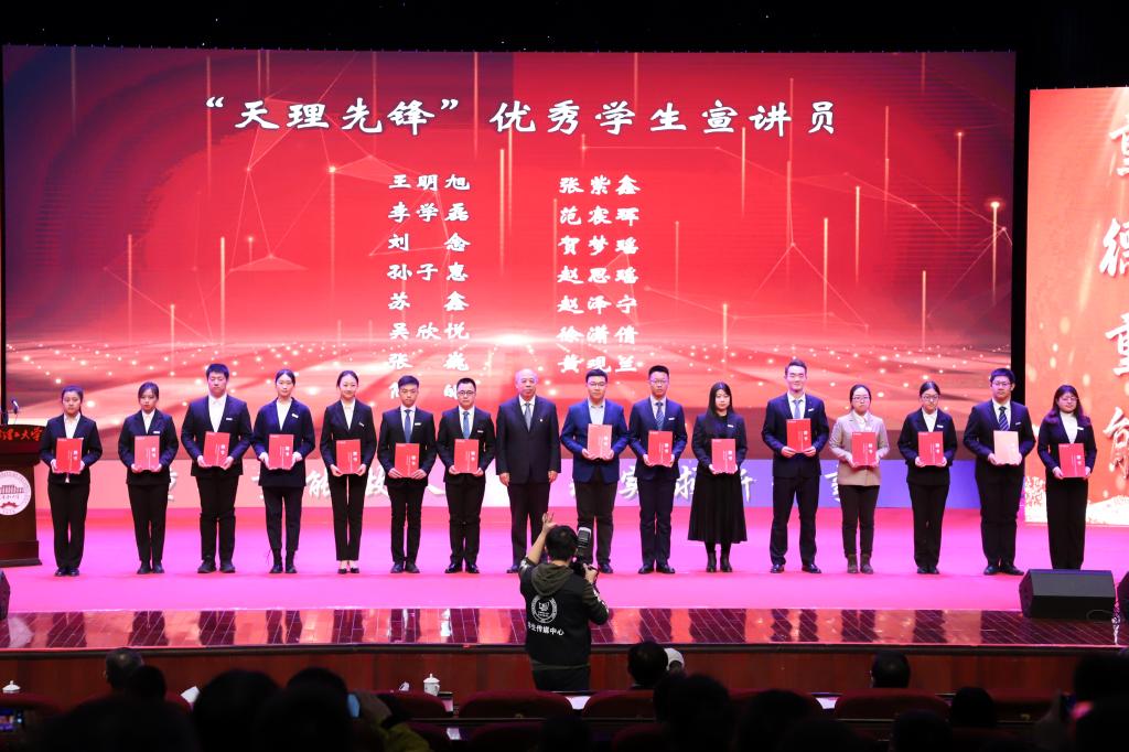 大會(huì)宣布了成立“天理先鋒”教風(fēng)學(xué)風(fēng)建設(shè)宣講團(tuán)的決定,劉東志、楊慶新為宣講團(tuán)成員頒發(fā)聘書。