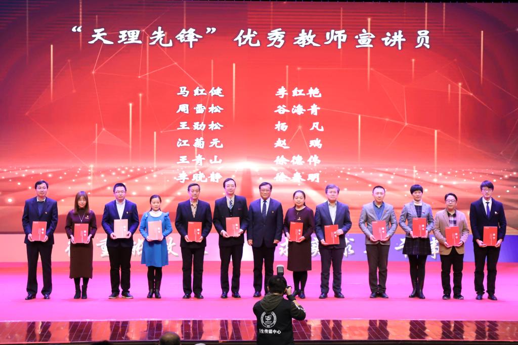 表彰大會(huì)分為“強(qiáng)基固本”“立德鑄魂”“清朗學(xué)風(fēng)”三個(gè)篇章,表彰在學(xué)校黨建、教學(xué)科研、管理等工作中涌現(xiàn)出的39名優(yōu)秀共產(chǎn)黨員、10名優(yōu)秀黨務(wù)工作者、19個(gè)先進(jìn)基層黨組織、8名“天理榜樣·最美教師”、2名“天理榜樣·最美教育工作者”、2個(gè)“天理榜樣·師德建設(shè)先進(jìn)單位”以及5000余名優(yōu)秀學(xué)生、87個(gè)學(xué)生先進(jìn)集體。