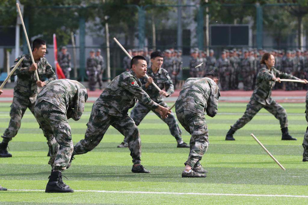 令人耳目一新的戰(zhàn)場綜合演練表演,再現(xiàn)了國家運(yùn)用軍事力量、遂行非戰(zhàn)爭軍事行動的場景。整場匯報,同學(xué)們精神抖擻,氣勢恢宏,展現(xiàn)了飽滿的精神風(fēng)貌和良好的訓(xùn)練效果。