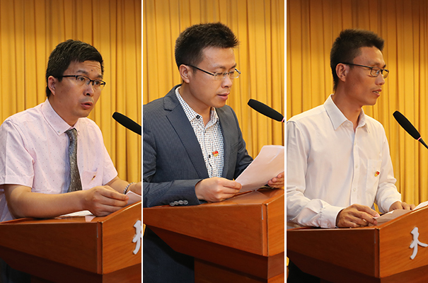 導師代表、科技處處長張楷亮,學員代表、后勤管理處曾樂樂和化學化工學院劉旭光分別結合自身工作學習體會,就如何完成好本次融通實訓工作進行了交流發言。黨委組織部負責同志為大家詳細解讀了融通實訓的培訓目標和學習工作要求。