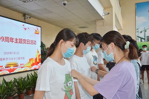 為慶祝中國共產黨成立99周年,堅定黨員理想信念,提高黨性修養,7月1日,環境科學與安全工程學院教工行政實驗中心黨支部、研究生黨支部和本科生第一、二黨支部聯合開展了佩戴黨徽儀式暨入黨宣誓主題黨日活動。
