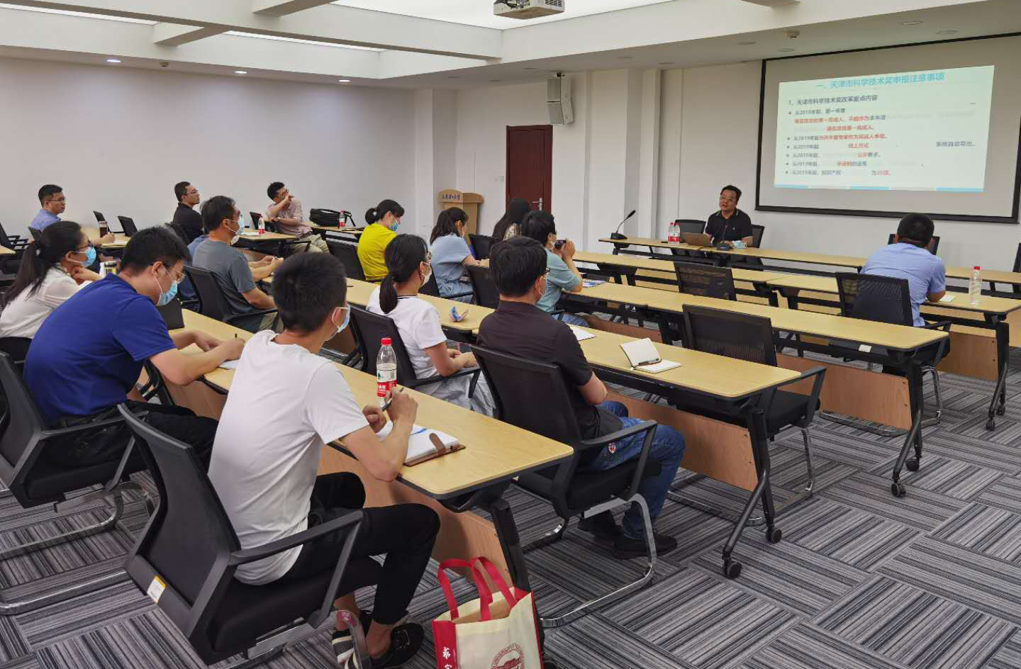 會上,科技處首先就市科技局關于2020年度全市科技獎勵工作改革要點和如何做好學??萍吉剟钌陥蠊ぷ鬟M行了說明。隨后,會議邀請天津大學科技獎勵管理專家劉濤以“天津市科技獎勵申報工作說明”為題,結合自然科學獎、技術發明獎和科技進步獎三個類型獎勵的不同要求,重點圍繞天津市科技獎勵的支持政策、評審規范、系統特點、注意事項及申報書撰寫方面等提出了全方位的建設性意見。最后,參會人員就今年天津市科技獎勵申報等工作進行了充分的溝通交流,并表示將嚴格按照學校的總體部署安排,積極準備項目申報材料,不斷提高申報書質量。