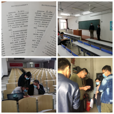 學(xué)院召開黨委會,研究部署《通知》要求;制定、組織黨員簽訂《海運(yùn)學(xué)院黨員承諾踐諾書》,明確責(zé)任、履職踐諾;黨員教師對學(xué)生進(jìn)行專業(yè)復(fù)課動員、課堂教學(xué)、畢業(yè)論文指導(dǎo)、適任證書考試輔導(dǎo)答疑,做不忘初心、牢記使命的踐行者;組織學(xué)生黨員帶頭做好個人日常防護(hù)、宿舍衛(wèi)生、課堂秩序、輿論引領(lǐng),發(fā)揮模范帶頭作用。