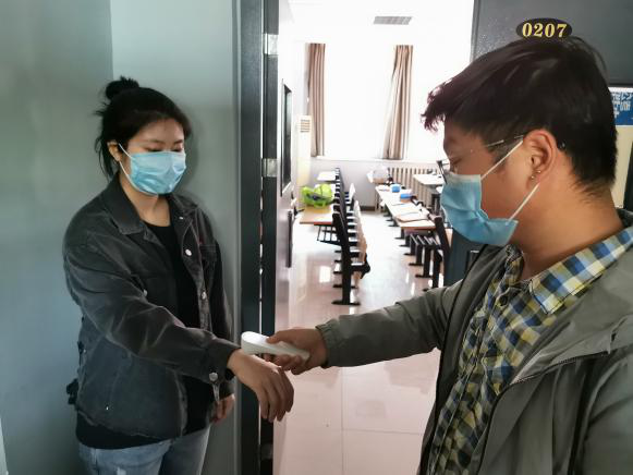 為了滿足畢業班學生論文指導的需要,管理學院專門設立了10間教室可供預約使用,同時管理學院學生黨員突擊隊緊守崗位,在教室周圍做好測溫、掃碼、衛生清掃等服務,并提醒同學們注意佩戴口罩和交流距離等。