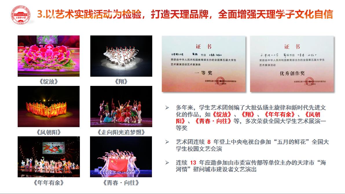 近日,2019年天津市高校新時代“一校一品”思政工作品牌建設項目揭曉,經專家評審,我校思政工作項目“發揮學生藝術團在學校美育中的獨特作用”成功入選。