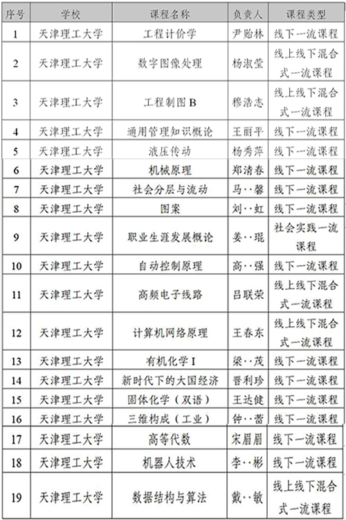 天津理工大學(xué)2019年天津市線下、線上線下混合式、社會實(shí)踐一流本科建設(shè)課程名單