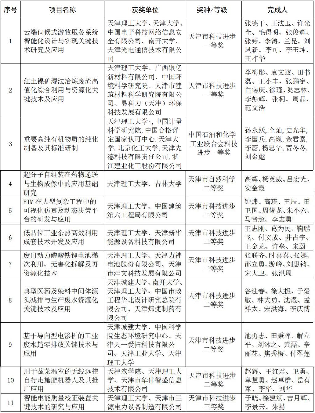 日前,天津市人民政府發布了《關于頒布2019年度天津市科學技術獎的決定》(津政發〔2020〕4號),我校10項科技成果獲得天津市科學技術獎勵,其中科技進步一等獎2項,自然科學二等獎1項,科技進步二等獎6項,科技進步三等獎1項。至此,我校2019年度共計獲得省部級科技成果獎勵11項,獲獎數量和等級在市屬高校中名列前茅。