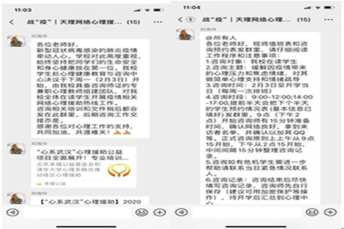 學校密切關注廣大學生的身心健康狀態,依托學校心理健康教育與咨詢中心開通在線心理支持服務,號召各學院兼職心理健康指導教師組成天理戰“疫”網絡心理援助團,面向我校全體學生針對因本次疫情所引發的恐慌、抑郁、焦慮等各類心理困擾開展心理輔導,做好特殊時期學生的心理疏導,幫助學生緩解負面情緒,積極面對學習和生活。