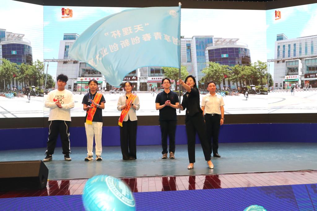 校領導和相關部門負責同志共同啟動第二屆大賽,并與首屆大賽獲獎師生、本科新生、新入職教師代表進行賽旗交接。