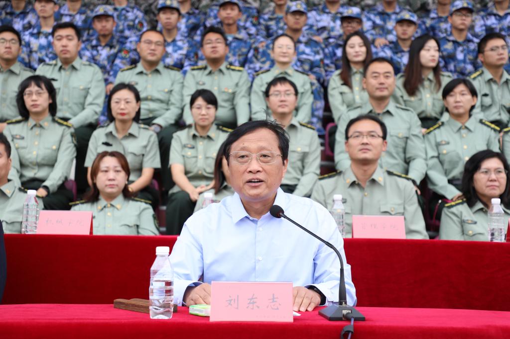 劉東志發表了熱情洋溢的講話,他充分肯定了參訓人員的訓練成果,高度評價了本次軍事技能訓練的育人效果。他寄語同學們要立鴻鵠之志,厚植家國情懷,將青春“小我”融入理想“大我”,將天理精神融入血脈、化作行動,主動扛起強國建設、民族復興的時代重任。要展雄鷹之姿,勇立時代潮頭,秉持著“路雖遠、行則將至,事雖難、做則必成”的堅定信念,在時代的號角聲中演繹精彩人生,做中國式現代化的參與者、建設者、貢獻者;要以丹鶴之風,涵養厚德正氣,秉承“重德重能 求實求新”的校訓,堅持學以致用、積厚成器,淬煉使命擔當,續寫“天理之美”的新篇章。