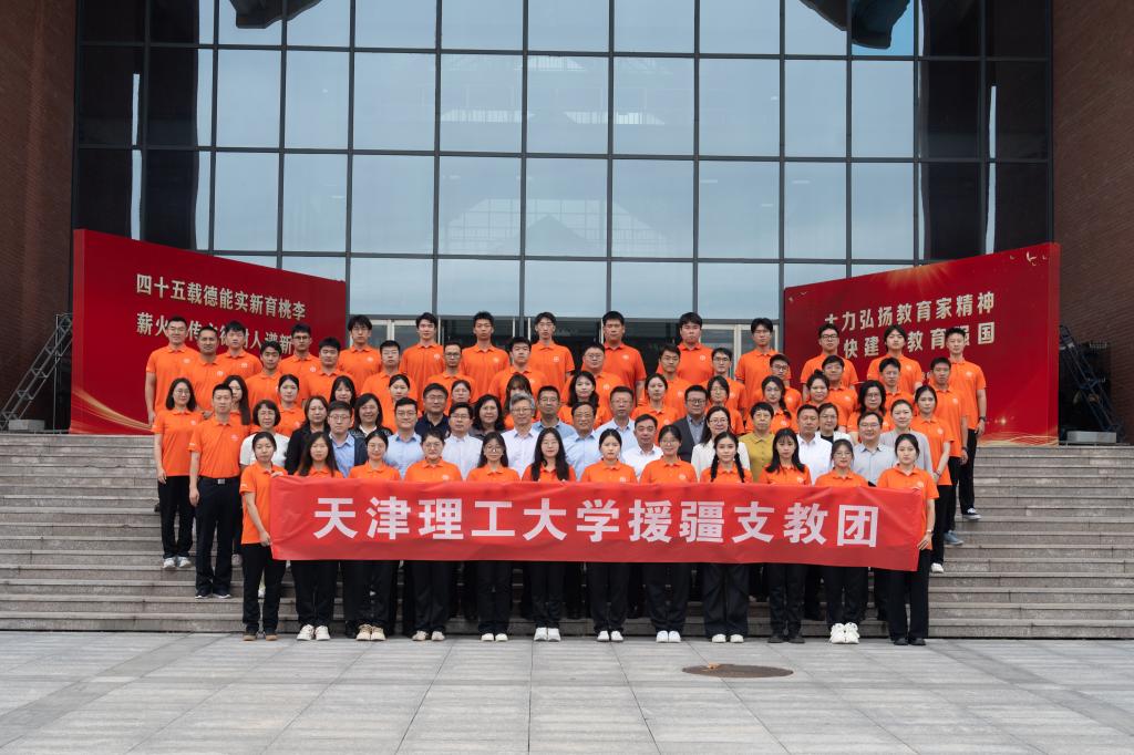 黨委常委、黨委組織部主要負責同志宣讀了《關于成立2024年天津理工大學赴新疆實習支教團的決定》。本次支教是天津市第十三批大學生援疆支教項目,學校從14個學院選派了50名同學、4名教師到和田地區民豐縣從事小學和初中學段實習支教工作。