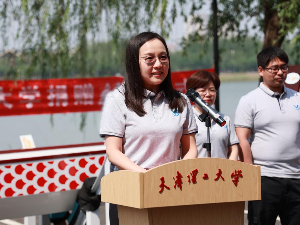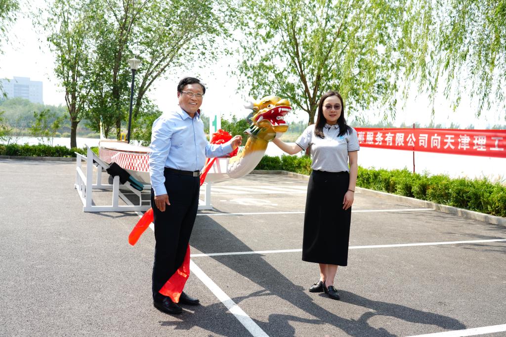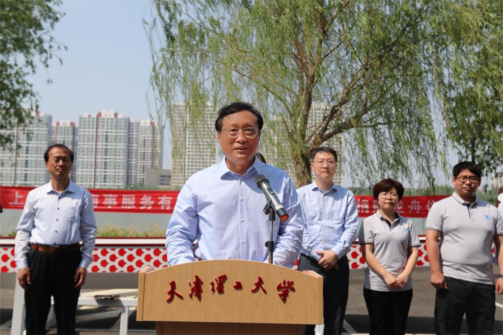 劉東志在講話中向森海海事長期以來對學校的大力支持表示感謝。他強調,“同舟共濟、奮勇爭先”的龍舟精神是中華優秀傳統文化的重要組成部分,廣大學生要牢記青年使命,堅定文化自信,促進全面發展。他指出,此次龍舟捐贈儀式,為學校“以體育人”“以文育人”工作帶來新的生機與活力,將進一步促進校企合作共贏,推動校友工作融合發展。今年是學校建校45周年,希望各位校友常回家看看,共同為學校事業高質量發展和天津經濟社會發展貢獻更大力量。