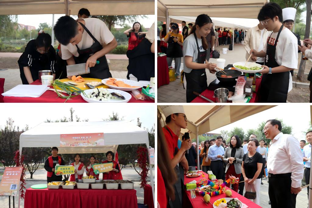 展廚藝,品美食。學校特別設計了戶外廚藝大賽。各參賽隊員在規定時間內相互配合,完成膳食知識競答、冷食拼盤與特色菜品的制作。云南紅三剁、拌三絲、地三鮮、青椒炒肉、燒茄子……眾多佳肴各具特色、刀工精湛,展現了同學們高超的廚藝與美食創意。師生評委團現場品嘗并點評,利用“明理工廠”制作的創意筆筒和書簽進行投票,選出心目中的“廚王”。