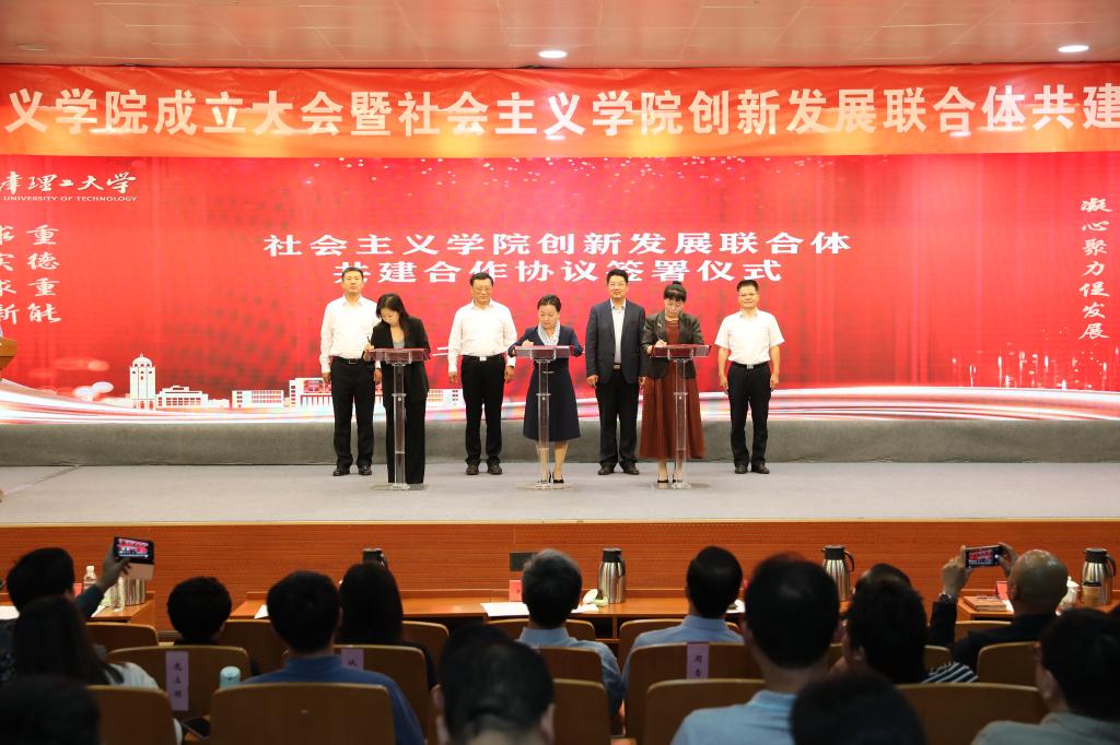 為全面貫徹落實中央社會主義學院關于“構建全國社院創新發展聯合體”工作要求,學校與市社會主義學院、西青區委統戰部共同打造市區校社會主義學院創新發展聯合體新模式。賈維萍、許瑞、邰菲分別代表市社會主義學院、天津理工大學、西青區委統戰部簽署社會主義學院創新發展聯合體共建合作協議。