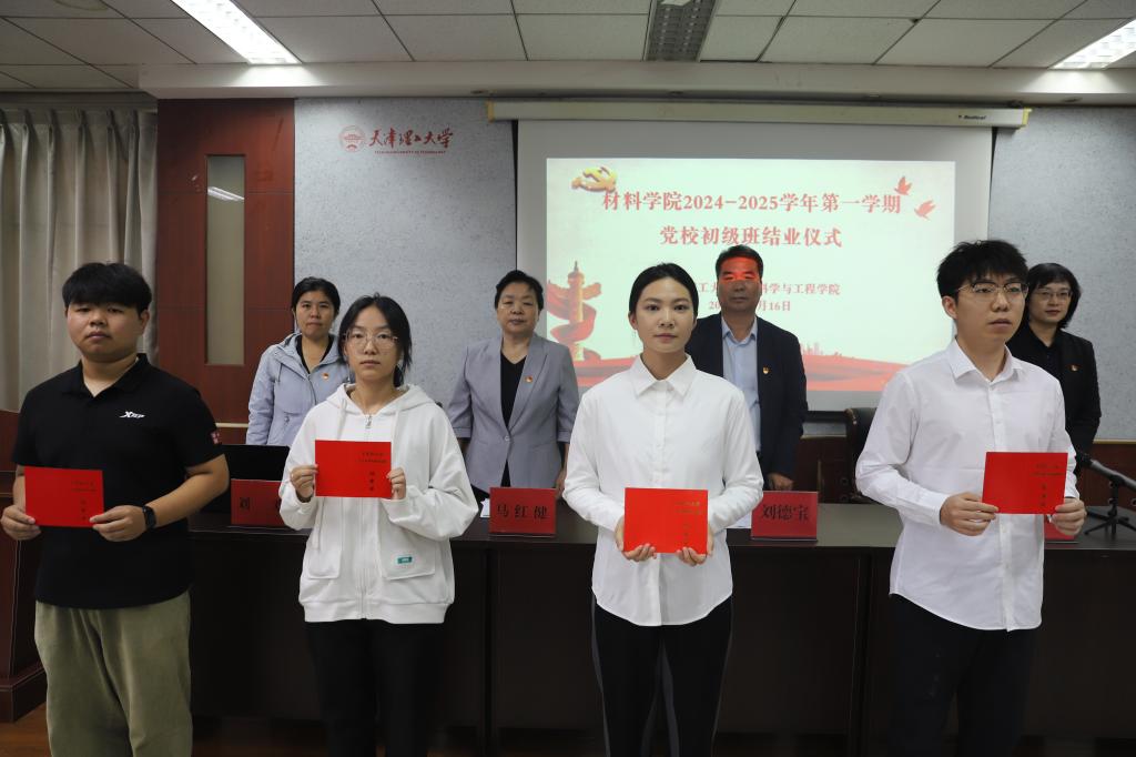 近日,材料科學與工程學院舉辦2024—2025學年第一學期黨課初級班結業儀式。學院黨委相關負責同志、校聘組織員、教師代表和60余名學員參加此次活動。