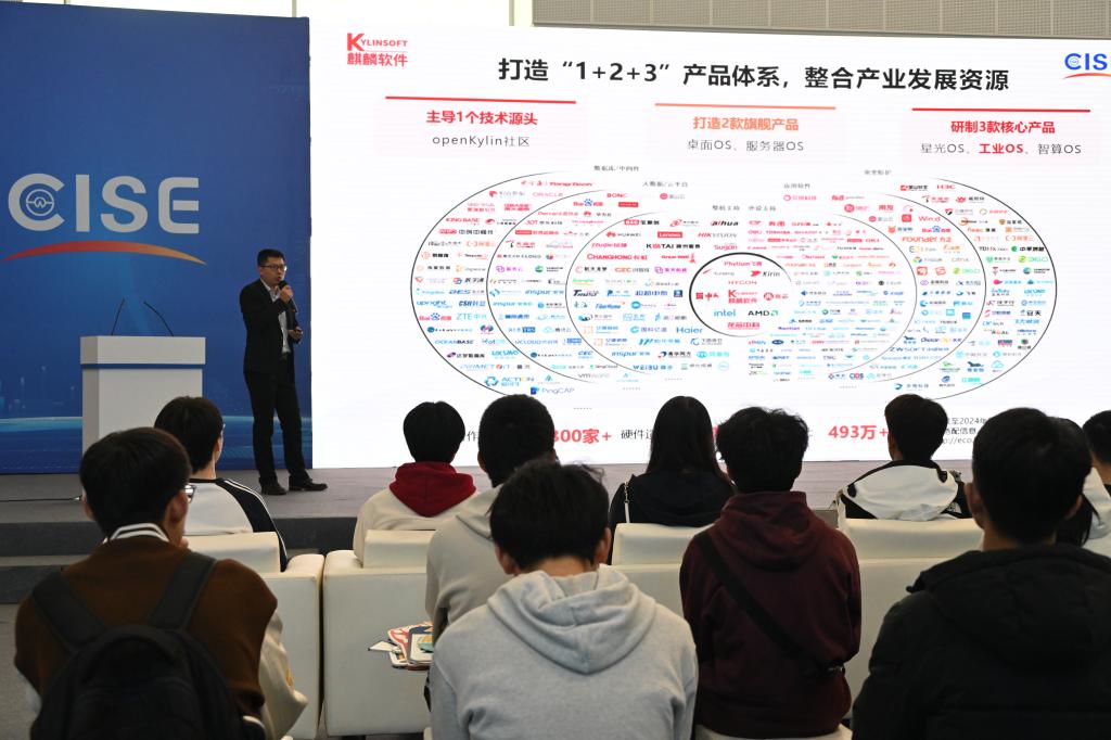 麒麟軟件公司導師代表為同學們詳細介紹了銀河麒麟V10操作系統。同學們認真參觀了相關企業最新的研究成果,感受企業之間創新科技的巔峰對話,并在各類互動場景中開啟沉浸式打卡,感受科技帶來的活力與激情。