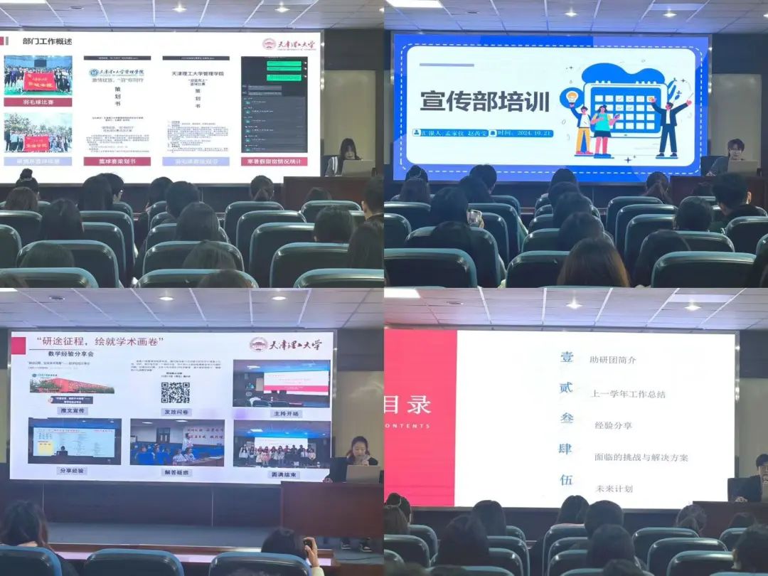 培訓會上全員集中學習了系列相關文件。同時開展各部門工作培訓,負責人向與會學生講述學術活動策劃成果、相互借鑒管理經驗、學習新媒體應用、探討社會實踐心得等內容,幫助新一屆研究生會干事盡快適應角色、發揮自身潛力,推動學院事業高質量發展。