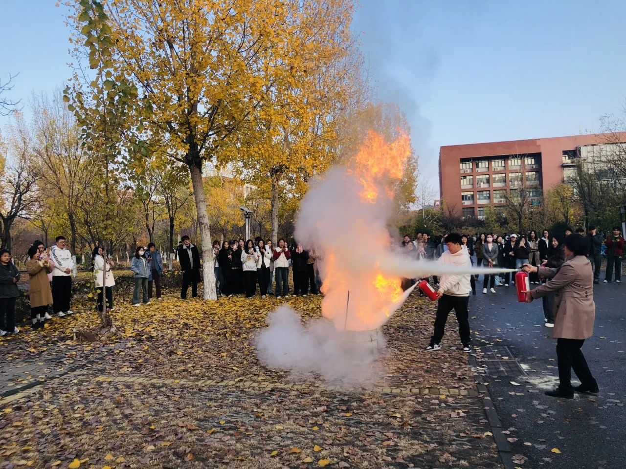 隨后,黨委安全工作部教師代表為廣大師生講解了火災逃生的基本知識,詳細介紹了滅火器的種類、結構及使用方法,并在現場示范干粉滅火器的正確操作流程。廣大師生們親自進行了實操練習,熟練地掌握了滅火器的使用技巧。
