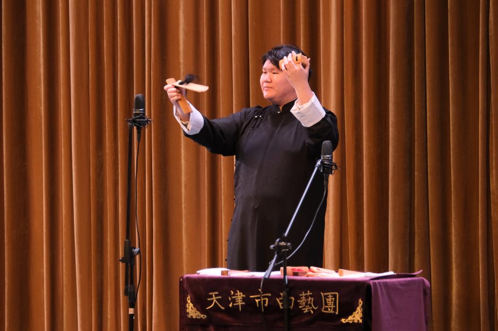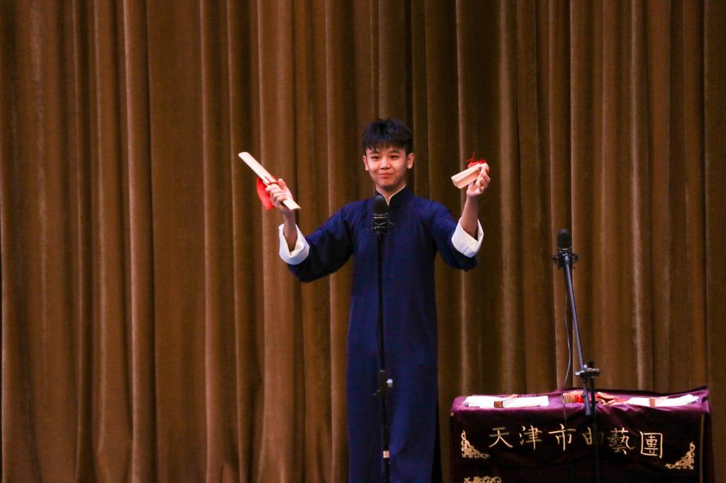 由我校大學生藝術團“津今有樂”相聲社孫鈺量表演的《十八愁繞口令》作為傳統曲目,流傳至今。