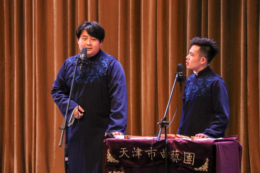 由我校大學生藝術團“津今有樂”相聲社宋昊霖、楊文瀚表演的相聲《東游記》以神話故事“八仙過海”為藍本,通過虛構和夸張的情節,將現代元素進行巧妙融合,整個故事突破了傳統敘述,生動有趣。