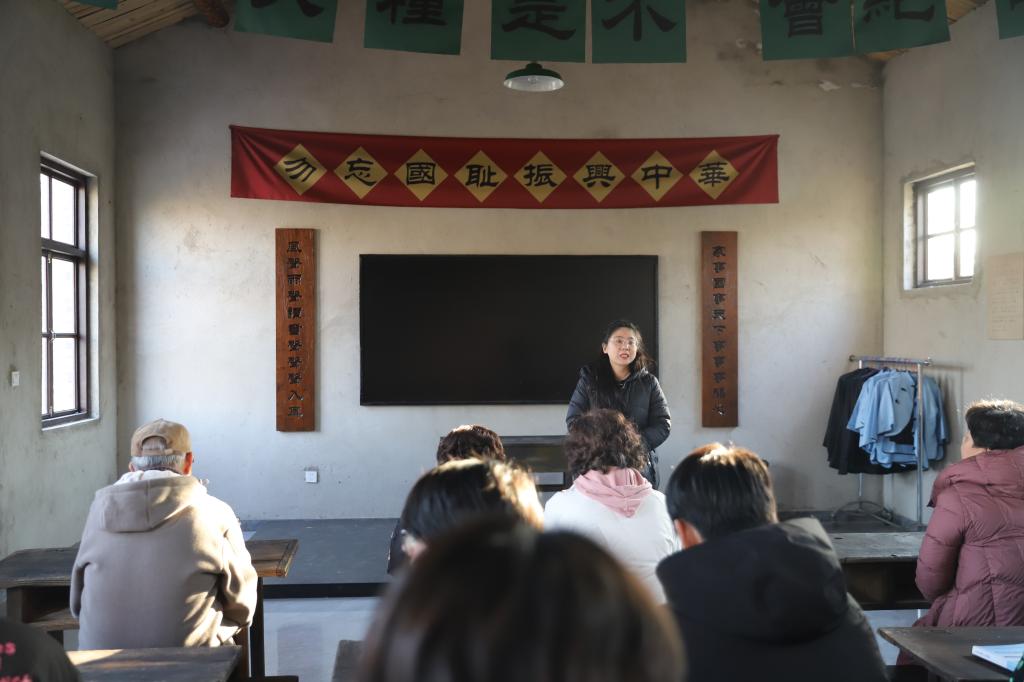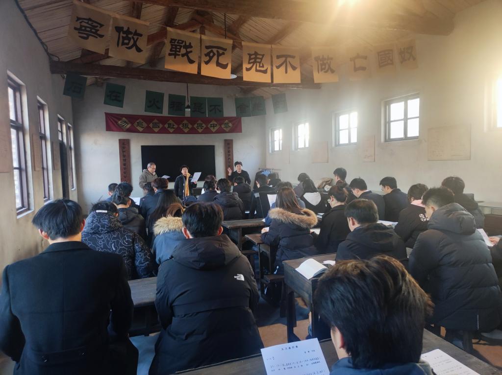 在王蘭莊農民學校里,學院退休老黨員們帶領大家學唱了《大刀進行曲》《畢業歌》等歌曲。隨著歌聲的響起,課堂氛圍達到了高潮,師生們在音樂與歷史的交融中感悟青春與責任。