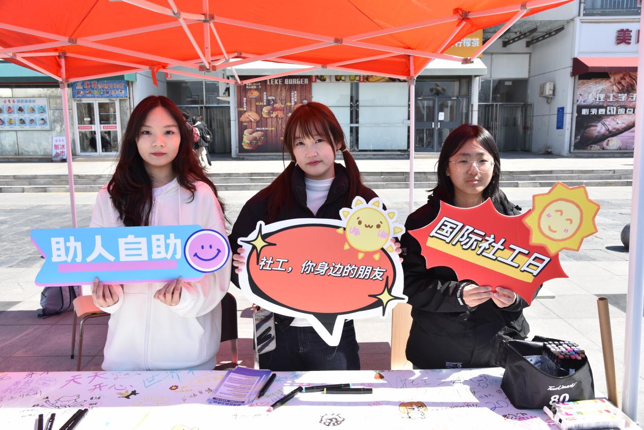 在第19個(gè)世界社會(huì)工作日來臨之際,社會(huì)發(fā)展學(xué)院在朝陽廣場舉辦了以“加強(qiáng)代際團(tuán)結(jié),追求恒久福祉”為主題的世界社會(huì)工作日宣傳活動(dòng)。