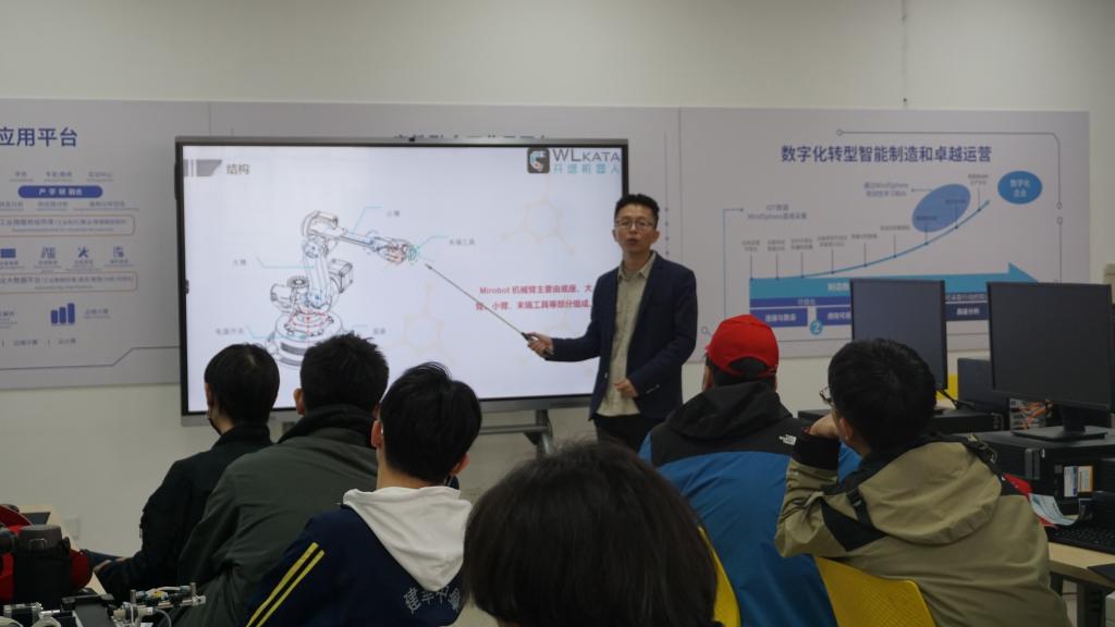 在“智造新視界”主題展廳,工程訓練中心的導師團隊帶領學生們開啟了一場特殊“旅程”。學生們直觀見證物聯網技術如何串聯起產品設計、生產、物流全鏈條——智能機器人精準抓取物料,AGV小車穿梭運輸,云端數據實時跳動。