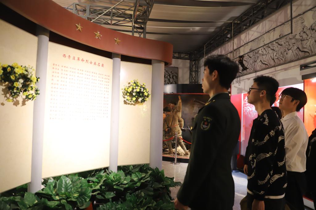 隨后,全體人員走進烈士紀念館,在講解工作人員的講解下,共同回顧了那段波瀾壯闊的歷史。館內120余幅圖片生動地展現了烽火連天的歲月;通過沉浸式的戰役仿真場景體驗,學生們親身感受了先烈們的英勇與堅韌;穿過“天津戰役知識長廊”,陵園結合大量高科技手段生動再現了戰役的輝煌瞬間。