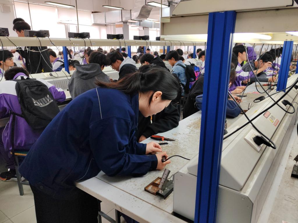 活動圍繞智能制造領域的核心環節,精心設計了五大特色課程模塊。一是傳統加工設備探秘。學生走進精密機械加工車間,在專業教師指導下參觀車床、銑床等設備,感受工業制造的“基礎基因”。二是走進智能機器人實戰課堂。學生通過編程與操控協作機器人完成識別、搬運等任務,直觀體驗人工智能與機械工程的融合應用。三是探索電子陀螺創客工坊。學生動手焊接、調試陀螺儀電路,結合傳感器原理設計智能平衡裝置,將理論知識轉化為科技作品。四是開展智能工廠全景模擬。學生利用虛擬仿真技術,化身“未來工程師”,參與數字化生產線規劃與工業機器人調度,感受智慧制造的協同魅力。五是進行新工科專業前沿對話。學校招生工作辦公室負責同志為同學們講授了一堂大學專業解析講座,詳細講述了智能制造、人工智能等新興專業的發展趨勢與就業前景,啟發學生做好生涯規劃。