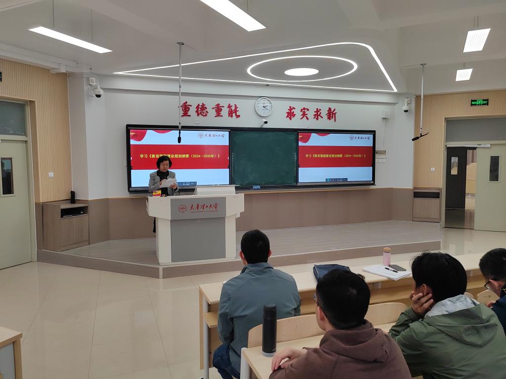 學院黨政主要負責同志領學全國兩會精神,深入解讀了《教育強國建設規劃綱要(2024—2035年)》中關于基礎學科建設、人才培養模式改革等要求,并結合當前教育形勢與學校發展目標提出具體落實措施。