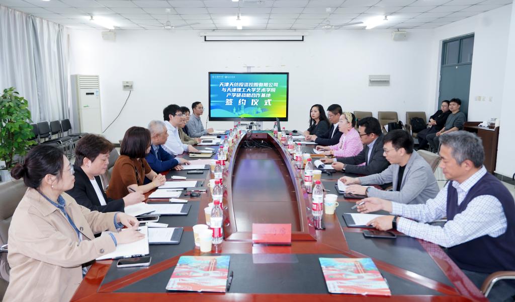 近日,藝術(shù)學(xué)院與天津天紡?fù)顿Y控股有限公司舉行產(chǎn)學(xué)研戰(zhàn)略合作基地簽約儀式。天津天紡?fù)顿Y控股有限公司黨委副書記、總經(jīng)理姜長(zhǎng)偉,副總經(jīng)理李華慶、張紅艷,學(xué)院黨政領(lǐng)導(dǎo)、教師代表參加會(huì)議。