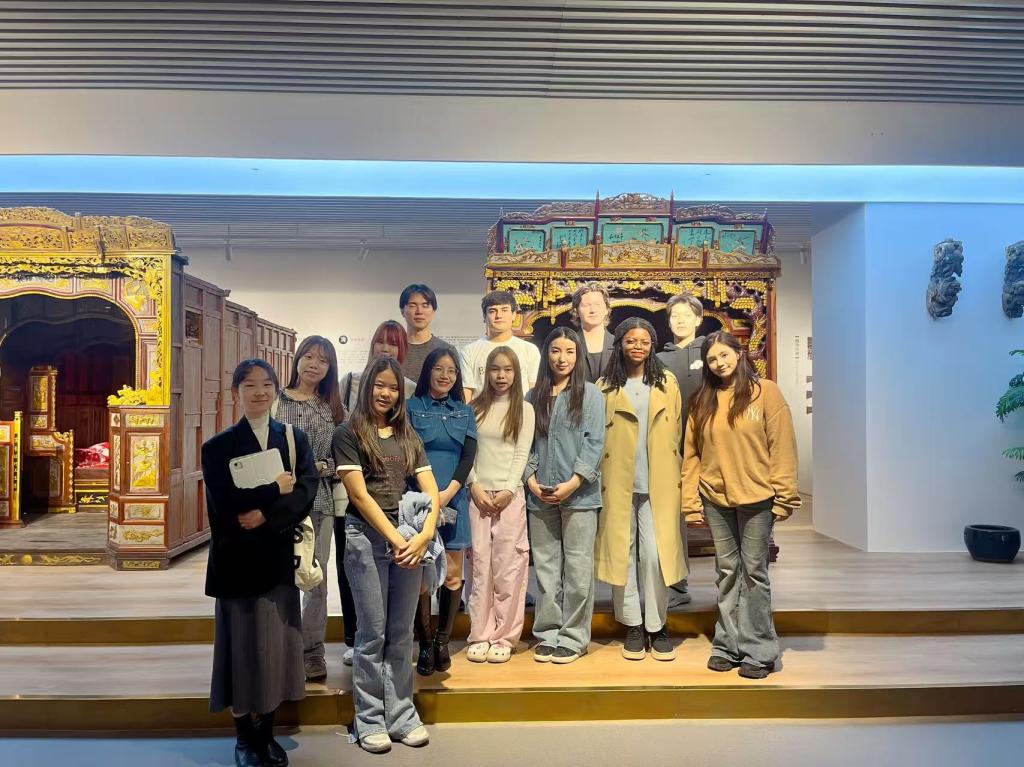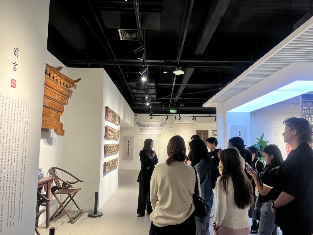 在講解員的帶領下,國際學生們近距離觀賞了館內明清家具、建筑構件等珍貴藏品。從細膩的人物雕刻到古樸的吉祥紋樣,每一件展品都生動展現了中國木雕“七分天然、三分雕琢”的藝術智慧。講解員結合歷史背景與雕刻技法,深入淺出地講述了木雕藝術中蘊含的民俗文化與匠人精神,引發了國際學生的深深贊嘆。
