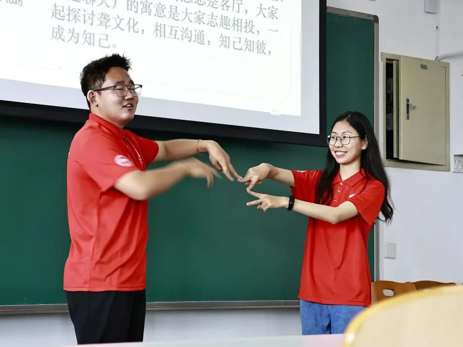 生活化手語教學環節創新采用情景教學模式,將超市購物、校園問路等日常場景轉化為教學素材。參與者在互動中掌握實用手語技巧,真切體會非言語溝通的魅力。一位北大參與者在學習后表示:“手語不僅是動作組合,更包含著表情、空間等豐富信息,這種交流智慧令人深受啟發。”