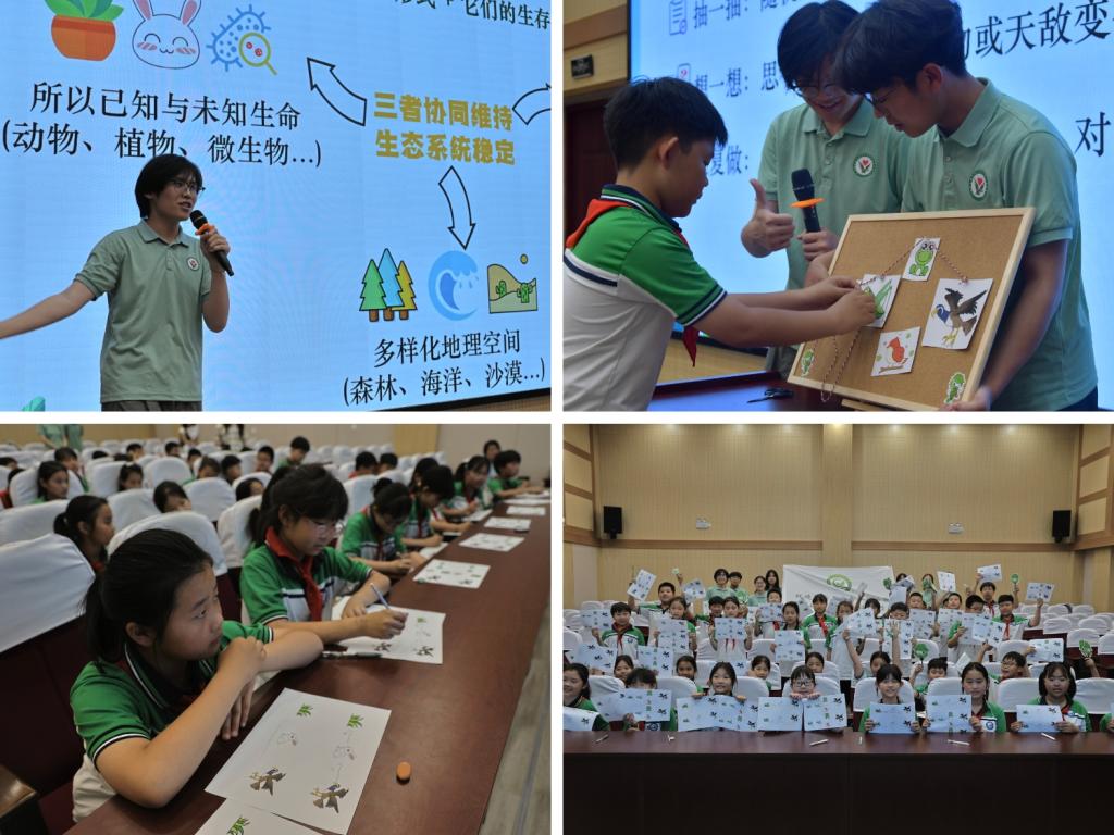活動伊始,科普團成員化身生態(tài)向導,以“生物多樣性大冒險”的任務形式開啟認知之旅。討論中,學生逐漸理解每個物種都是生態(tài)鏈的關鍵節(jié)點,也意識到生物多樣性的脆弱與珍貴,堅定了保護生物多樣性的決心。