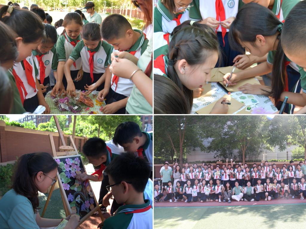 科普團走進中北星光路小學操場,圍繞“從詩行平仄看文明脈絡”“從千花凝雅看生態版圖”“從謎題探海看減排智慧”“從丹青筆觸看山河骨相”四大主題設置活動點位。孩子們以詩畫勾勒理想家園;在“干花書簽”制作中感受自然之美;在“環保謎題”展板前凝神思考、熱烈討論,深化節能減排理念;在填色畫布上描繪可持續發展的山河圖景。這些集趣味性、知識性、實踐性于一體的體驗活動,使孩子們在動手玩樂中體驗環保樂趣。