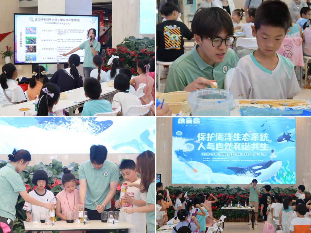 6月8日,環(huán)境科學(xué)與安全工程學(xué)院“碳”索綠境科普團(tuán)聯(lián)合天津市規(guī)劃展覽館,為30組親子家庭帶來了一場生動(dòng)的“守護(hù)藍(lán)色星球”海洋探秘之旅。
