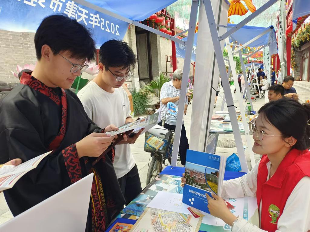 6月14日,環(huán)境科學(xué)與安全工程學(xué)院應(yīng)急志愿服務(wù)隊(duì)赴西青區(qū)楊柳青古鎮(zhèn)參加主題為“人人講安全、個(gè)個(gè)會(huì)應(yīng)急——查找身邊安全隱患”2025年天津市安全宣傳咨詢?nèi)栈顒?dòng)。
