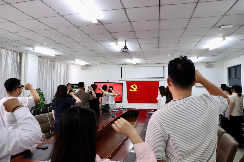 在“最后一次入黨宣誓”儀式上,畢業(yè)生黨員們整齊列隊,面向鮮紅的黨旗,重溫入黨誓詞。鏗鏘有力的誓言在教室中久久回蕩,既喚醒了黨員們的入黨初心,也更加堅定了他們?yōu)楣伯a(chǎn)主義事業(yè)奮斗終身的信念與決心。