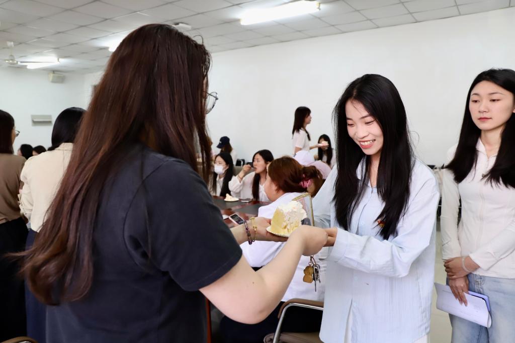 在“最后一場政治生日會”上,學(xué)院為畢業(yè)生黨員精心準(zhǔn)備了生日蛋糕。黨員們圍坐在一起,分享著這份特殊的甜蜜,在切分蛋糕的過程中,暢談入黨以來的成長感悟與心路歷程。黨員們在溫馨的氛圍中,進一步強化了身份認(rèn)同感與歸屬感,也讓這場生日會成為鐫刻在記憶深處的紅色印記。