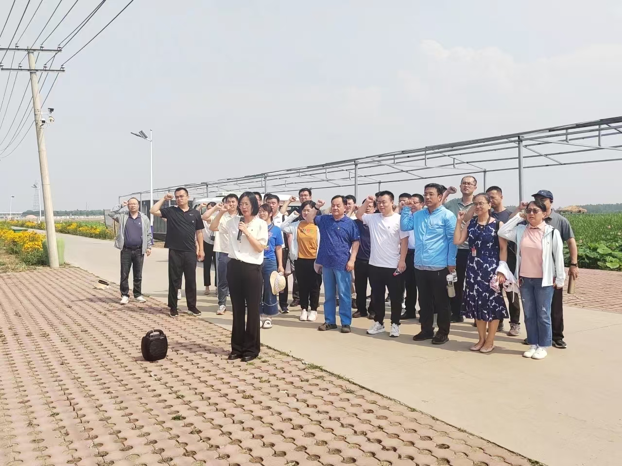 在講解員的帶領下,黨員們參觀了鄉村振興創富工坊,重溫抗洪搶險的感人故事;走進蔬菜大棚,了解第六埠村農業發展及鄉村振興成果;走上抗洪大堤,重溫入黨誓詞,觀看抗洪精神展,了解第六埠村抗擊“23?7”特大洪水及災后重建情況,感悟當地黨員群眾團結拼搏的精神,增強歷史責任感和使命感。