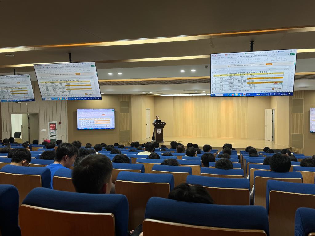 學院黨委相關負責同志結合近三年理學院考研情況,為全體計劃考研的畢業生進行宣講。她希望同學們能夠正確認識自身的學習能力,結合長遠的生涯規劃,做好目標院校及專業選擇。她從近三年學院畢業生高質量就業出發,引導全體畢業生把握招聘期,盡快完善個人簡歷,做好求職準備。