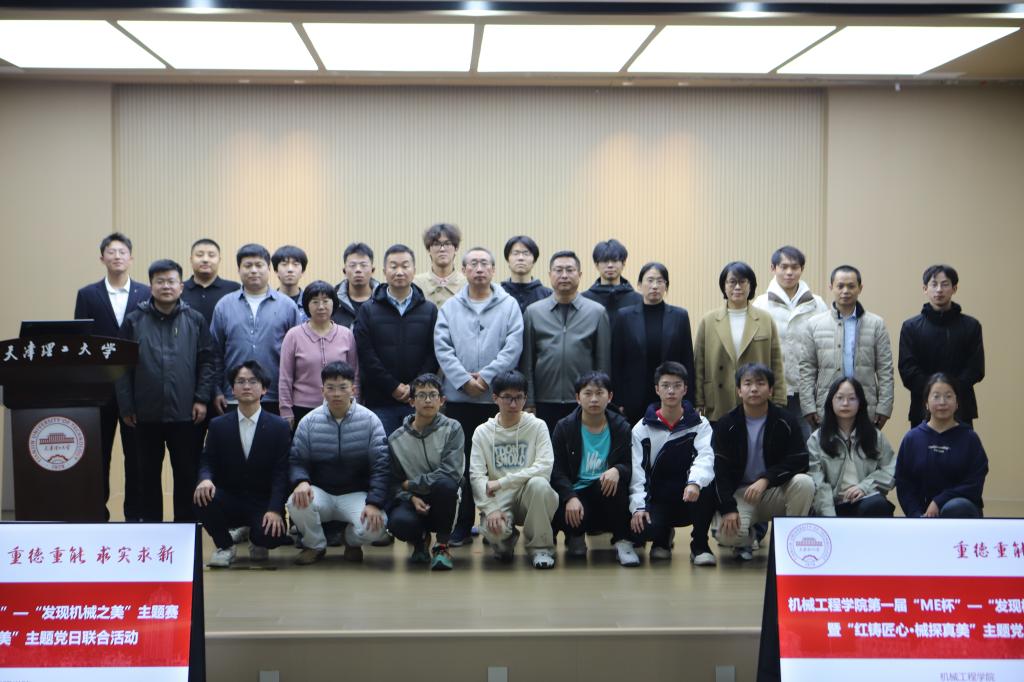 10月28日,機(jī)械工程學(xué)院舉辦首屆“ME”杯“發(fā)現(xiàn)機(jī)械之美”主題賽決賽暨“紅鑄匠心·械探真美”聯(lián)合主題黨日活動(dòng)。天津市博盛睿創(chuàng)科技有限公司總經(jīng)理王海軍、天津市天森智能設(shè)備有限公司總經(jīng)理尤濤、中交天津港灣工程研究院有限公司副院長(zhǎng)李沛受邀擔(dān)任評(píng)委。教工機(jī)械黨支部全體黨員、16名決賽選手及130余名機(jī)械工程專(zhuān)業(yè)學(xué)生參加活動(dòng)。