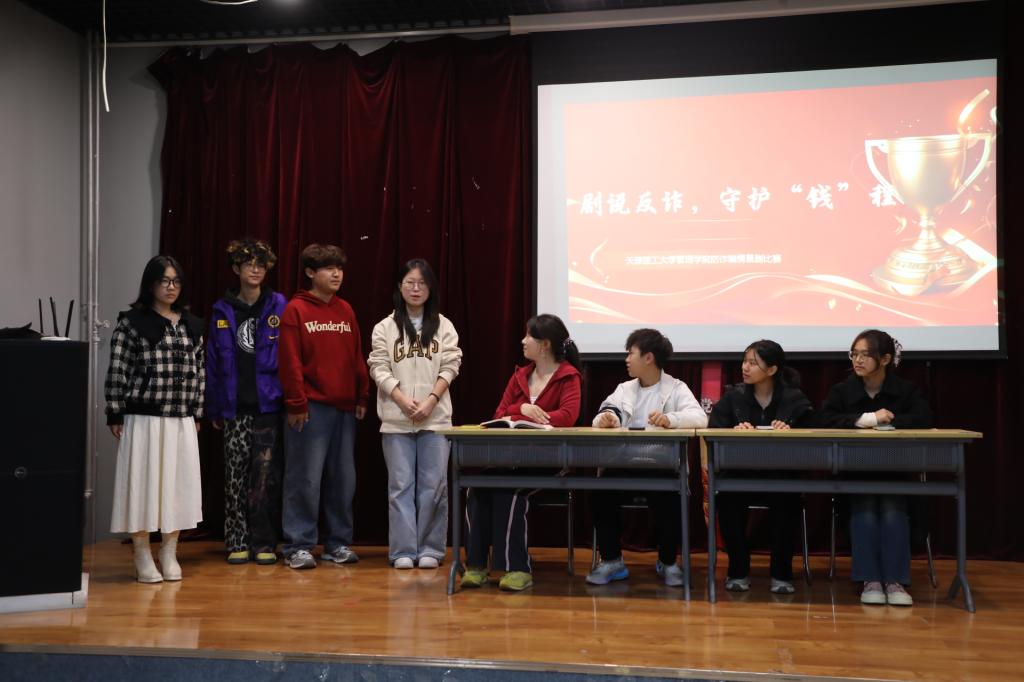 近日,管理學(xué)院舉辦防范電信網(wǎng)絡(luò)詐騙情景劇比賽。