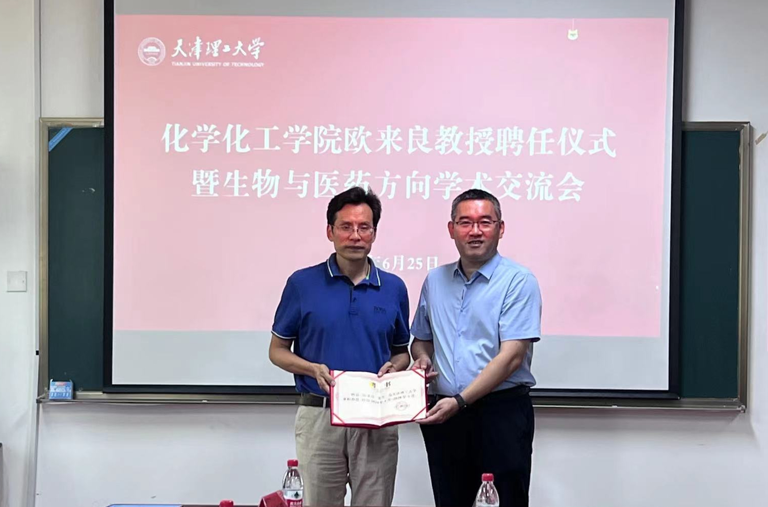 學院主要負責人對南開大學歐來良教授的到來表示熱烈歡迎,并為其頒發聘書。他指出,伴隨著歐來良教授的加入,將會推動學院生物與醫藥方向的師資隊伍和科研團隊建設,提高科研創新能力,促進人才培養質量,有效提高學院的社會服務能力。