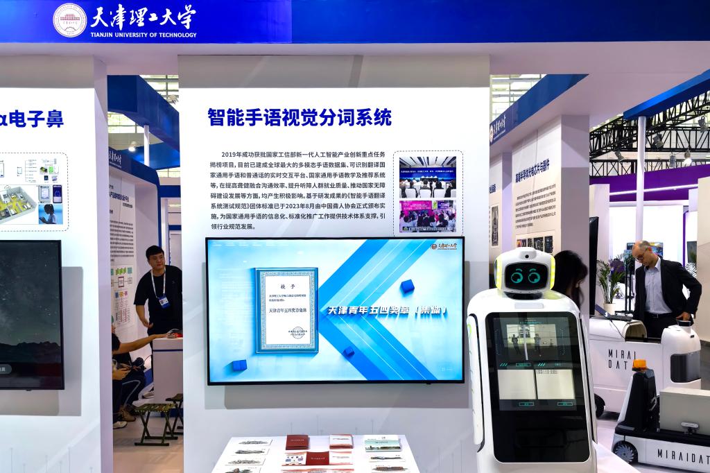 據了解,本屆博覽會由天津、重慶兩地聯合舉辦,設置人工智能、智能網聯汽車、機器人、智能制造等10大主題展區,參展企業和機構超550家,匯集了來自智能科技領域的眾多前沿新產品、新技術、新成果。天津市殘疾人聯合會、華為技術有限公司聯合推出“海河·爾語”聾人手語理解大模型。與此同時,與中國農業銀行天津市分行共建“人工智能手語聯合創新研究中心”,共同研發的金融場景手語智慧型機器人也亮相本次博覽會。