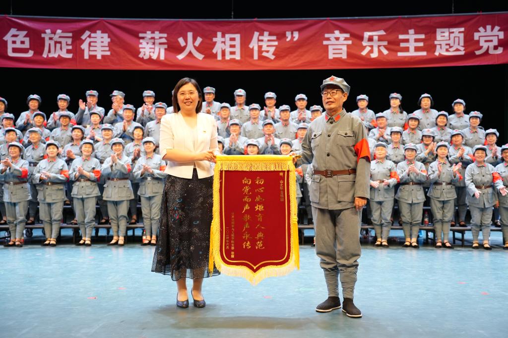 活動中,全體師生共同誦讀《七律·長征》,齊聲高歌《歌唱祖國》,現場氛圍緊張而又熱烈。學院主要負責同志向“山之歌”合唱團贈送錦旗,表達了對老一輩革命家的崇敬之情。
