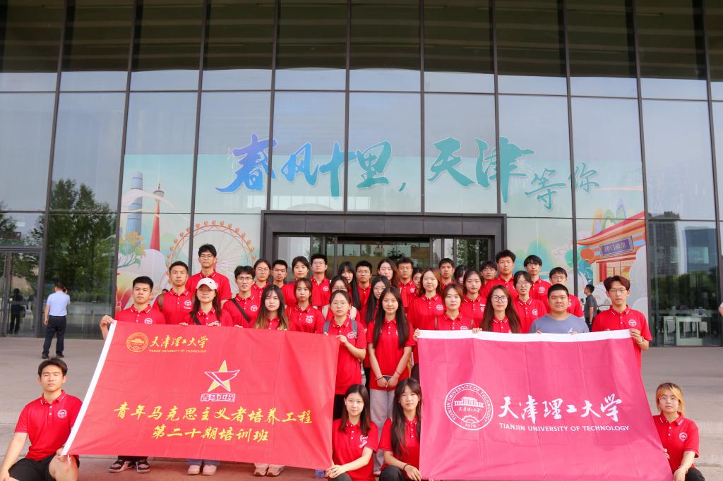 儀式結束后,馬克思主義學院思政課教師代表在現場為青馬學員們帶來了一堂“大思政課”,講述了天津自鴉片戰爭后至中華人民共和國成立的一百年間的風雨歷程,引導廣大學生在推進強國建設、民族復興偉業中展現青春作為、彰顯青春風采、貢獻青春力量,奮力書寫為中國式現代化挺膺擔當的青春篇章。與此同時,校青馬學員們集體參觀學習了“中華百年看天津”主題展覽。