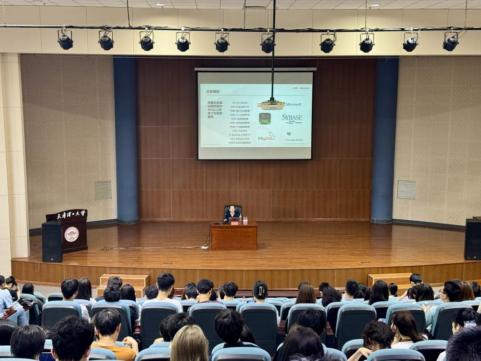 座談結束后,北京人大金倉相關負責人以《國產數據庫產業發展趨勢》為題,為學院400余名學生開展講座,以加快創新驅動發展戰略為導向,圍繞數據庫技術發展、國產數據庫發展之路和數據庫人才培養等方面,為廣大同學講述數據庫技術的發展歷程。