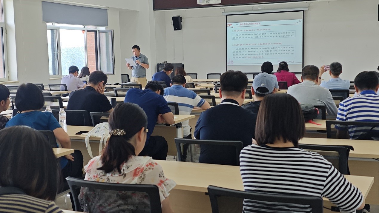 谷海青以“涵養新時代教師‘言為士則、行為世范的道德情操’”為題,圍繞陶冶德高為范的精神追求、錘煉知行合一的師德師風等三方面展開,號召全體教師大力弘揚教育家精神,以德高為范之道鑄造師德之魂,塑造高尚的精神追求,并發揮校訓、校風、教風和學風的文化傳承作用,在教學活動中踐行以德為先的育人理念,在言傳身教中不斷提升學生的道德素養。